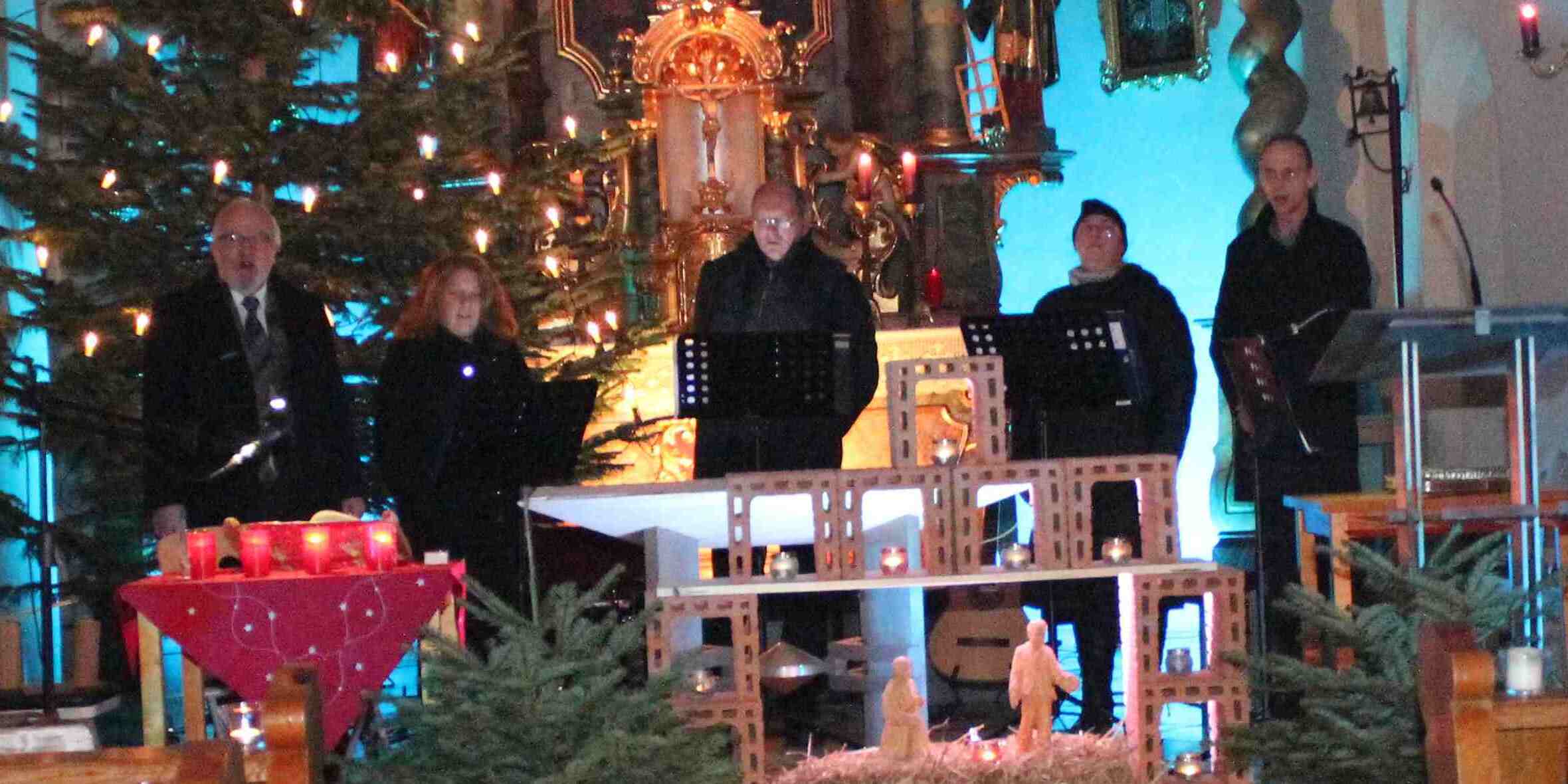 Es folgte ein Trompetenstück des Trios Schubauer aus Bruck, dann sang das Männertrio RMT, bestehend aus den drei Chorleitern Rudi Zimmerer, Manfred Hornauer und Thomas Schön, das Lied „Es wird ein Stern aufgehen“, gefolgt von „Schee langsam wird’s still“ des Projektchors Wald unter der Leitung von Thomas Schön.