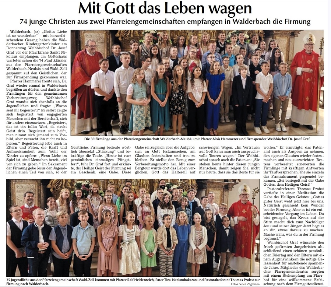 35 Jugendliche aus der Pfarreiengemeinschaft Wald-Zell empfingen die Firmung in Walderbach