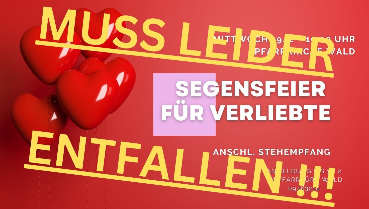 Dieses Jahr muss die Segensfeier für Verliebte (19. Februar) LEIDER ENTFALLEN !!!