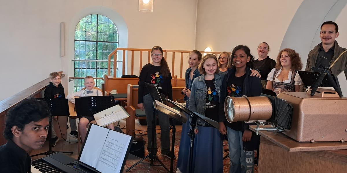 Bild von links: Rehan, Jonas, Sebastian, Lisa, Mia-Sophie, Franziska, Carina, Ziya, Michaela, Maria, Jonas. Chorleiung: Thomas Schön