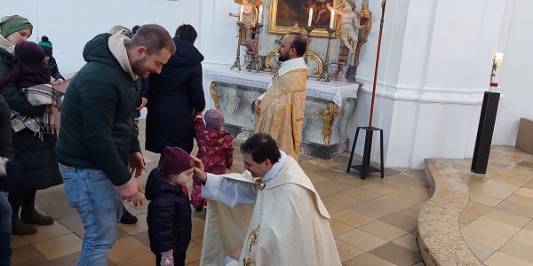 In der Wallfahrtskirche Sankt Leonhard in Hetzenbach, fand für alle Kinder der Pfarreiengemeinschaft Wald/Zell, traditionell am 28.Dezember, dem „Fest der unschuldigen Kinder“, die Kindersegnung statt. Dekan Ralf Heidenreich und Pfarrer Tinu begrüßten die zahlreichen Kinder und ihre Familien und freuten sich über die gut gefüllte Kirche.