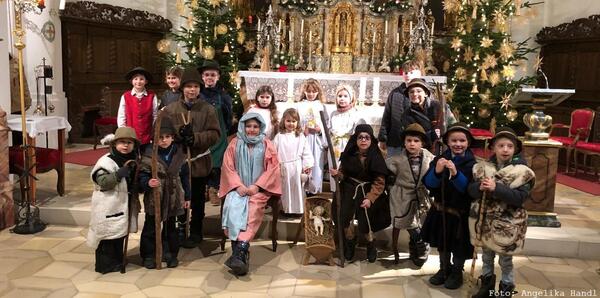 Ein eindrucksvolles Krippenspiel haben die Kinder aus Martinsneukirchen und Umgebung am Heiligen Abend in der Filialkirche Sankt Martin aufgeführt. Bei der weihnachtlichen Andacht, die von Susanne Gebhardt und Helmut Baumer gestaltet wurde, schlüpften mehr als 20 Teilnehmer in die Rollen der Herbergssuche. Die beeindruckende Darstellung wurde stets mit passenden Liedern untermalt bis mit „D´Liab is vom Himmel kuma“, das Krippenspiel endete. Musikalisch wurde das Ereignis der Heiligen Nacht von Susanne Gebhardt (Klavier) mit Tochter Marie Gebhardt (Querflöte)umrahmt.