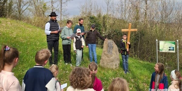 Begleitet wurden die Kinder von Pfarrer Tinu und Pastoralreferent Thomas Probst. Die Kinder, Eltern und Großeltern, sowie ein paar Gläubige der Pfarrgemeinde machten an jeder Station des Kreuzweges Halt und jeder Firmling las und betete an einer der Kreuzwegstationen. Alle stimmten dazu mit einem Lied jeweils ein, bevor man stets weiterzog, bis zur 14. Station.
